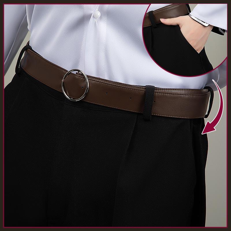 クールシルクコットンで製作しています。ウエストはタック入りで適度なボリュームを持たせつつ、裾に向かってきれいに細くなる美シルエットです。
