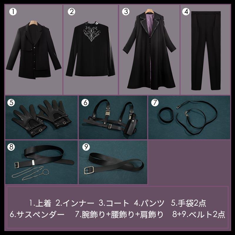コート、上着、インナー、パンツ、飾り物(手袋2点、サスペンダー、腕飾り、腰飾り、肩飾り、ベルト2点)
