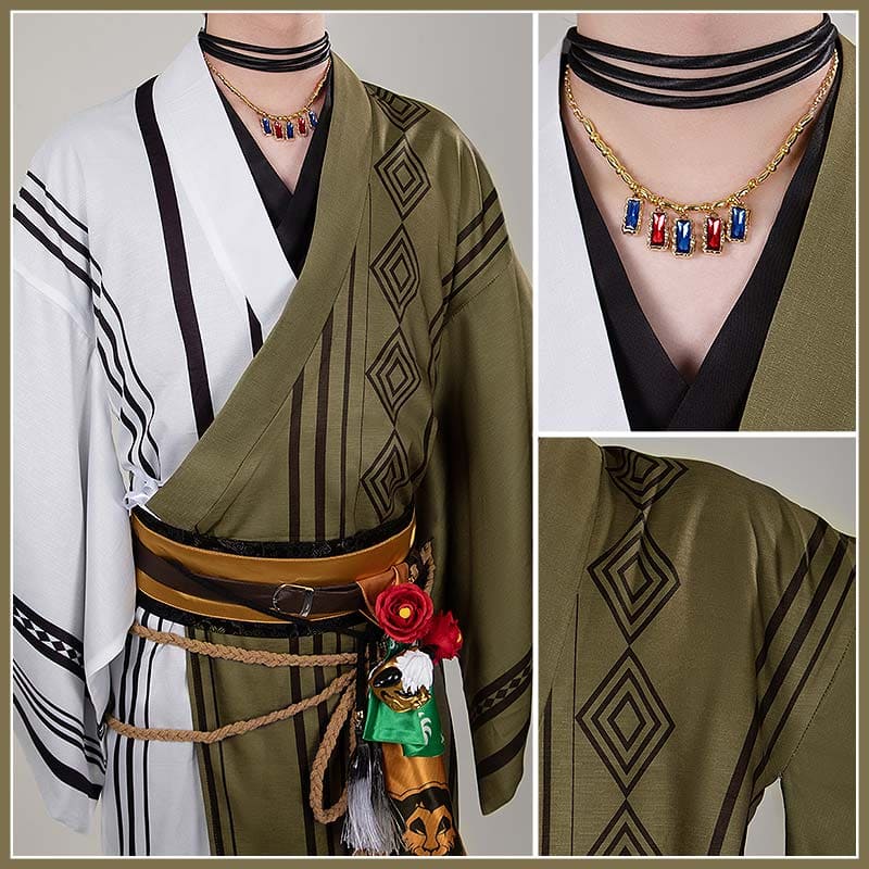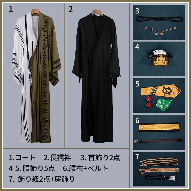 腰飾り(5点):金色の仮面と、獅子の頭が印刷された帯は、キャラクターのアイデンティティの象徴です。細紐やピンで固定することができ、腰部の視覚的ディテールを大きく豊かにしています。