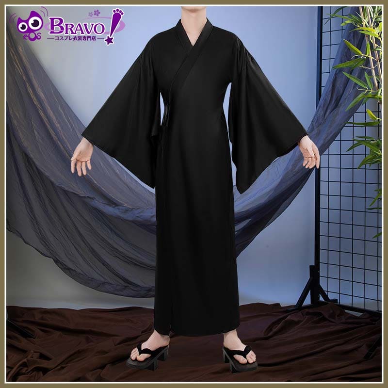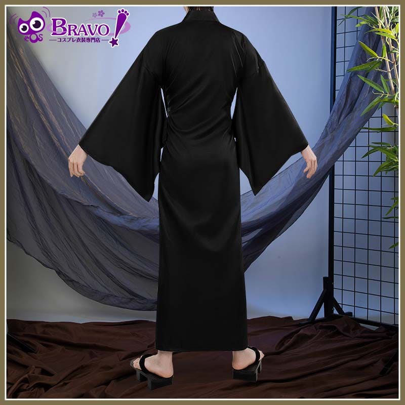 黒い長襦袢。生地は滑らかで、ドレープ性に優れています。広い袖がふわりとした雰囲気を醸し出しています。